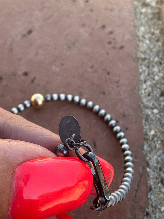 Sterling Silver & Gold Beaded Necklace: 20 Inches