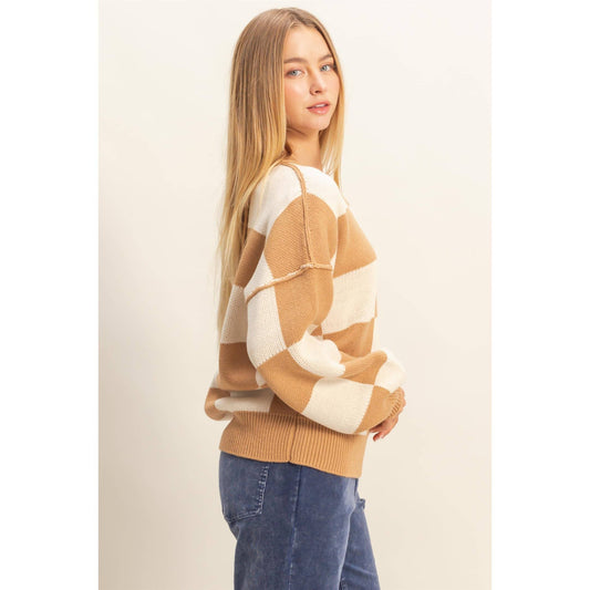Beige Checkered Sweater