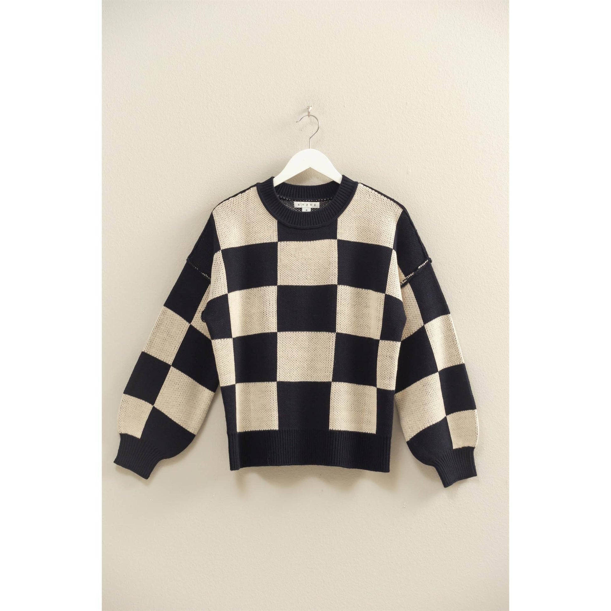 This checkered crewneck is giving cozy energy with edge. It's the statement sweater you throw on when the fit needs a little “something.”
