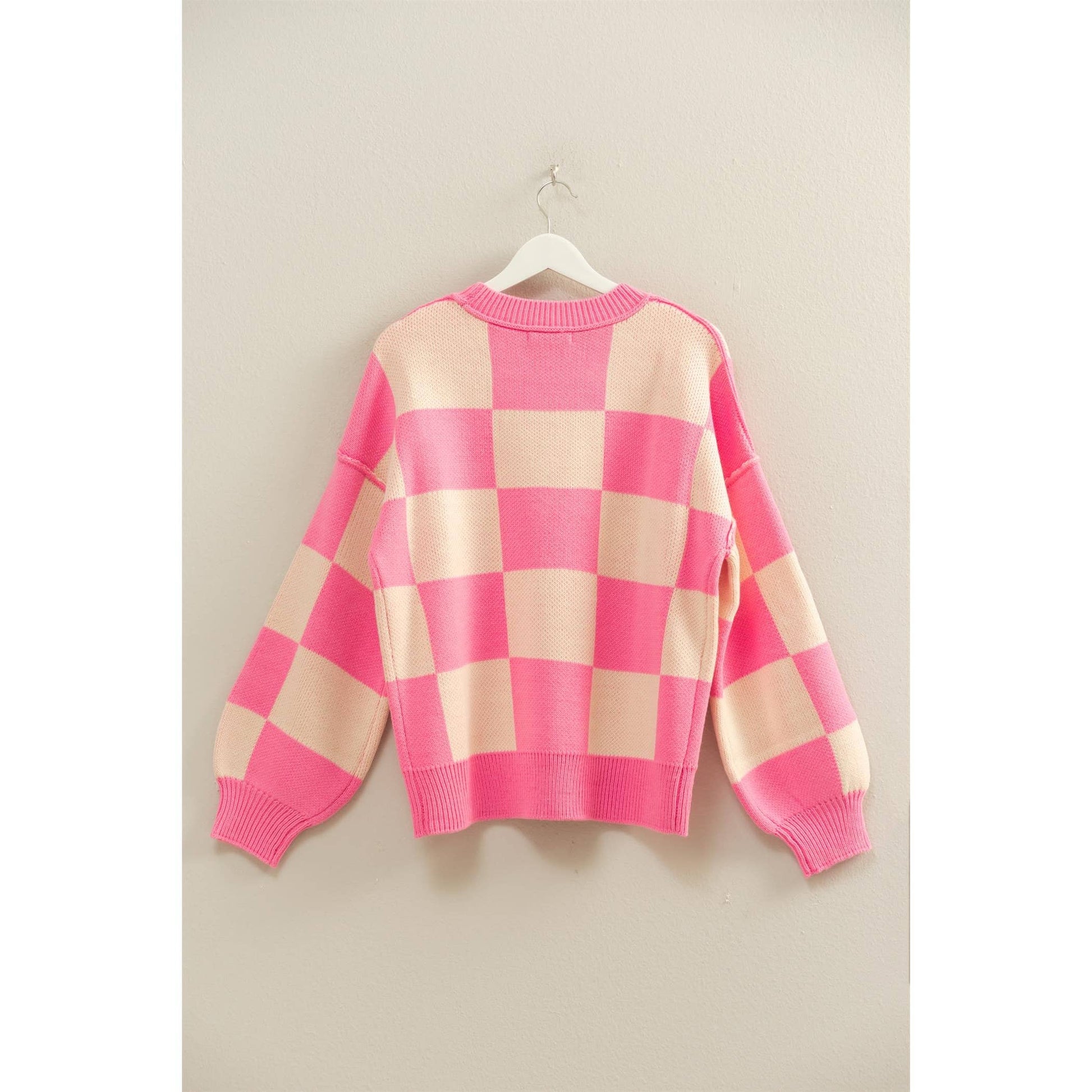 This checkered crewneck is giving cozy energy with edge. It's the statement sweater you throw on when the fit needs a little “something.”